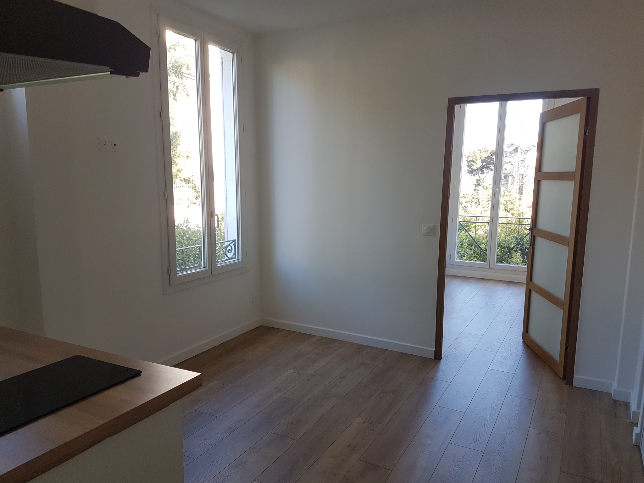 Deux pièces de 27m2 en 1er étage, entièrement rénové, climatisé, cuisine aménagée dans la pièce de vie, une chambre, salle d'eau et WC indépendant, très lumineux, proche de la mer.